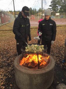 Onsdagen 2/11 var det wokat utomhus för alla eleverna och vuxna. Lite kyla i luften men med en glad sol som lyste över oss. Pojkarna Markus och ”Jojjo” erbjöd sig/valdes att tända elden. Anders har på morgonen fyllt på sand i cementröret på vår utegrillplats. Den har nämligen försvunnit.